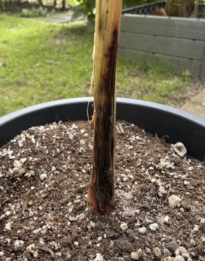 Stammfäule an einer Ensete Ventricosum 'Maurelli' infolge einer zu feuchten Überwinterung